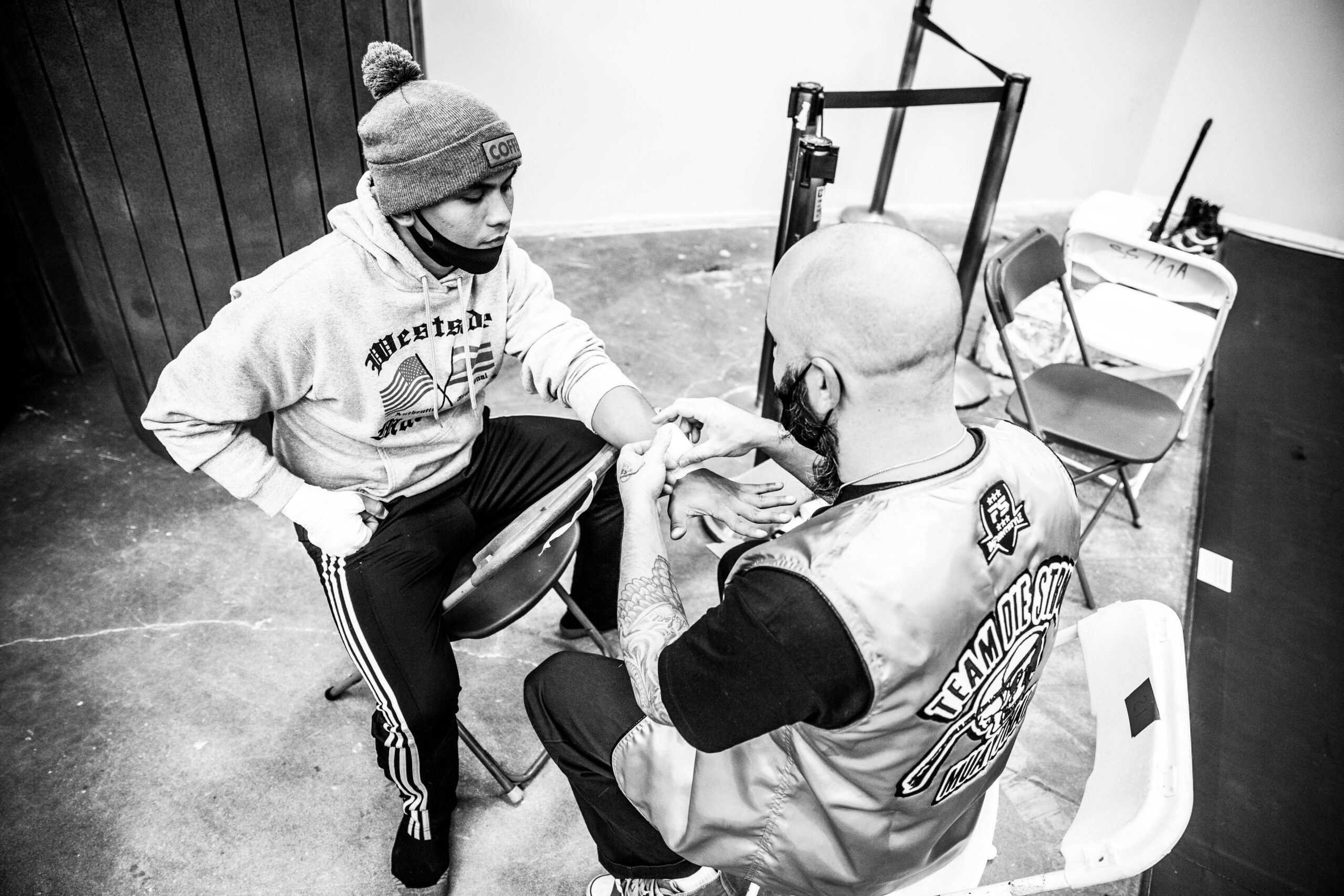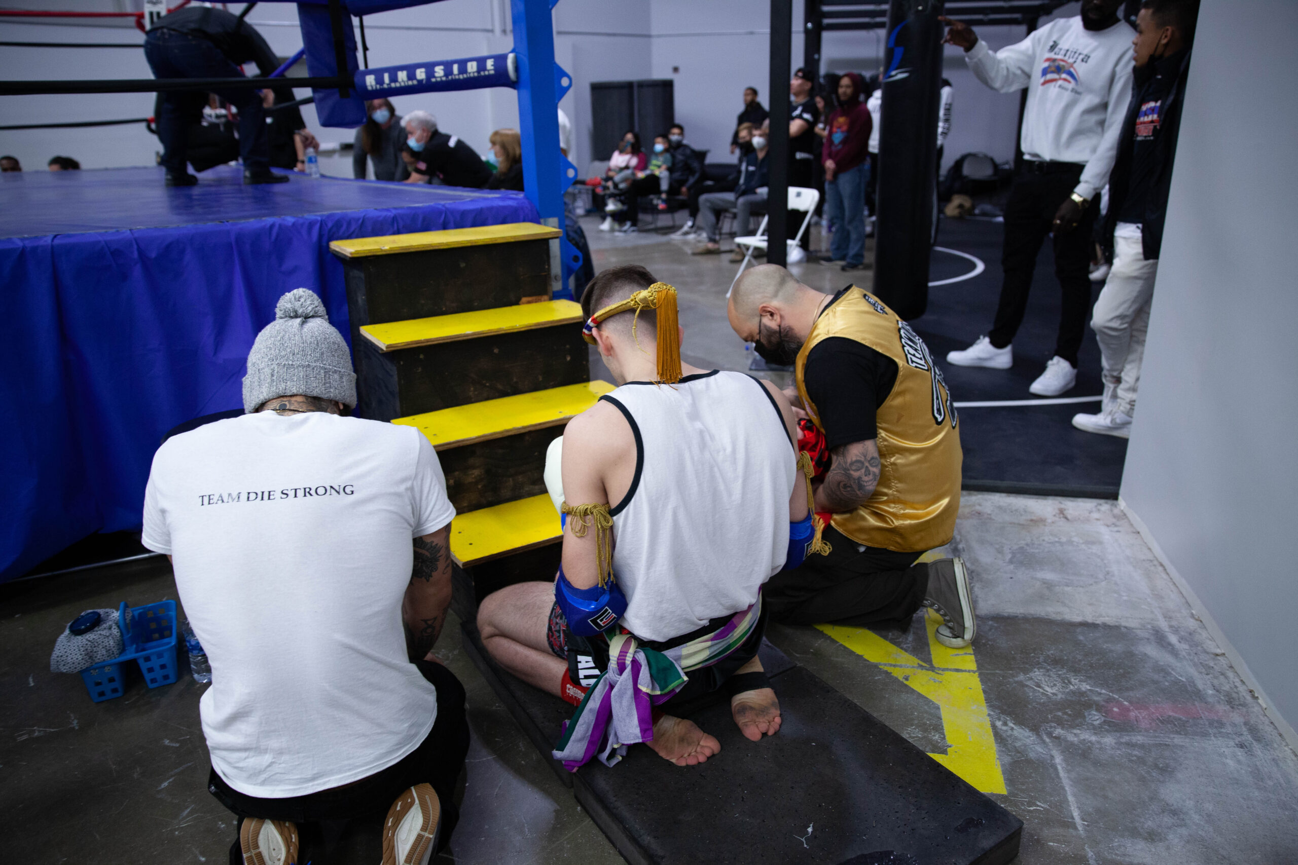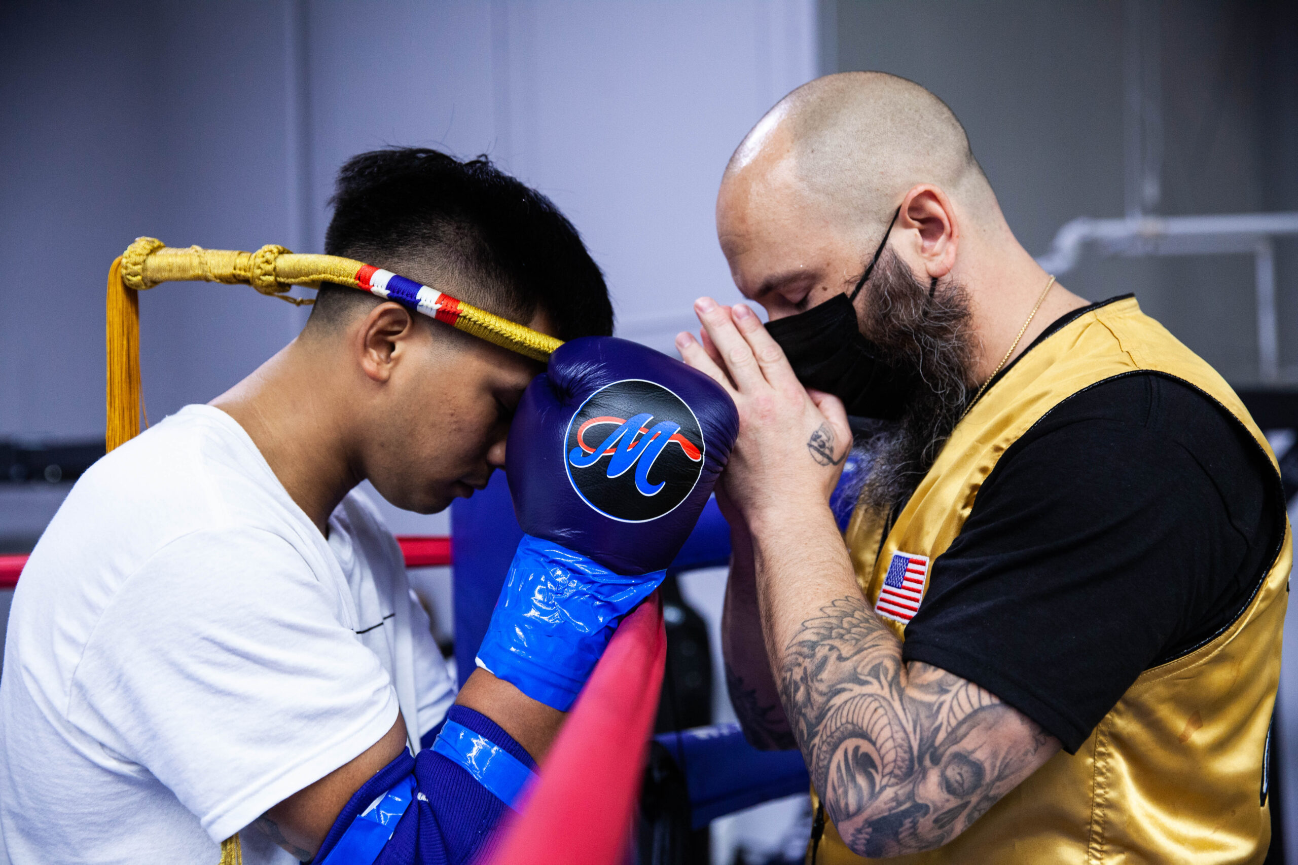 - March 2021 Mario, Jadin, and Coach pray before the fight.